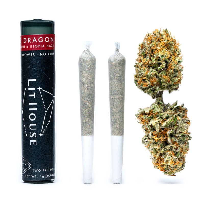 Two 0.5g Pre-Rolls Himalayan Kush x Utopia Haze This exotic strain, bred in Amsterdam by Barney’s Farm, is a sativa-dominant cross of classic Afghani Kush with carefully selected and backcrossed Brazilian landrace. Red Dragon was brought to the Mendocino Coast sometime in the 2010s and has been a local favorite among coastal indoor growers ever since for its abundant yields, fierce potency, and spectacular flavor profile of juicy guava nectar and warm ginger. Fresh, shimmering green buds, adorned with flaming red stigmas, delight the nostrils with sweet tropical fruit, sultry spice, and savory parmesan. This soaring, inspiring sativa high will lift you to the clouds where the Kush genetics will leave you floating in total relaxation for hours.